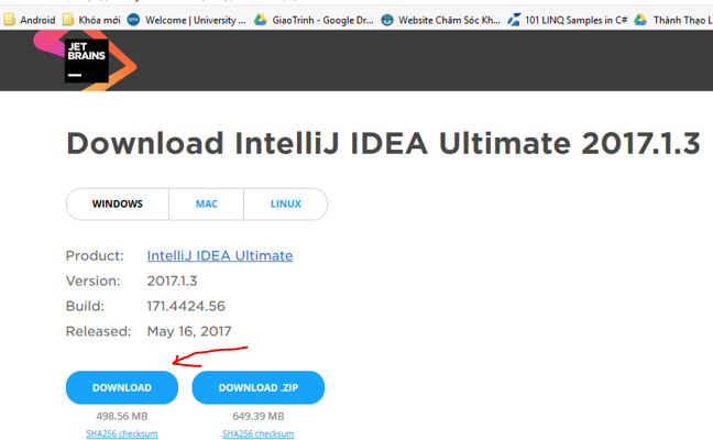 Ở trên ta chọn IntelliJ IDEA Ultimate để tải: