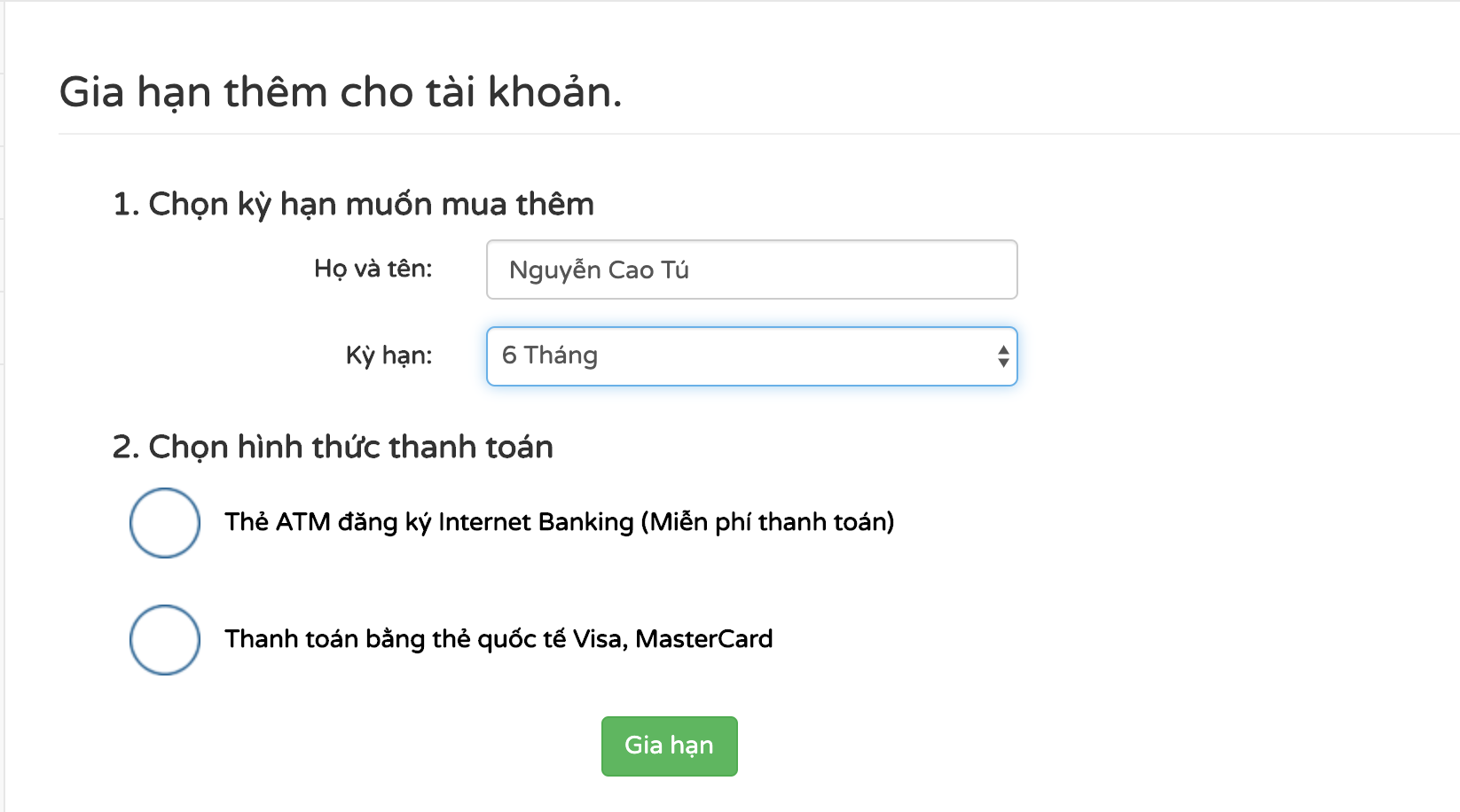 - Gia hạn thanh toán trực tuyến tự động qua Internet Banking, Visa, Master Card…