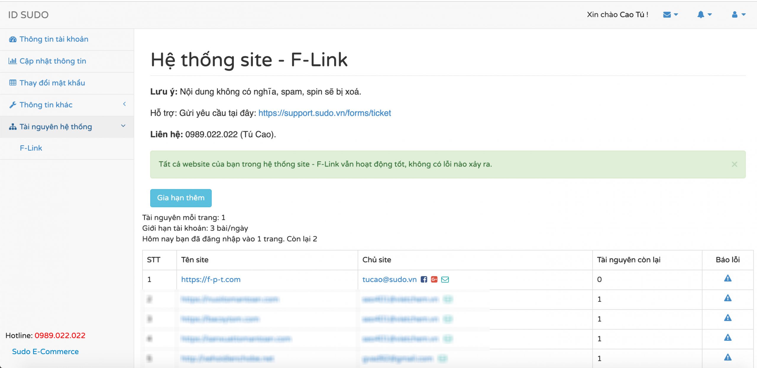 Chi phí 100k/ 1 tháng để tham gia F-Link được sử dụng cho việc nâng cấp Plugin Sudo Oauth, ID Sudo, Hỗ trợ kiểm tra kết nối, kỹ thuật…cho mọi thành viên tham gia hệ thống.