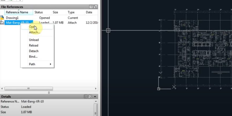 Trên thanh công cụ Xref bạn chuột phải vào file Xref và nhấn Open nó sẽ giúp bạn mở file gốc của Xref.