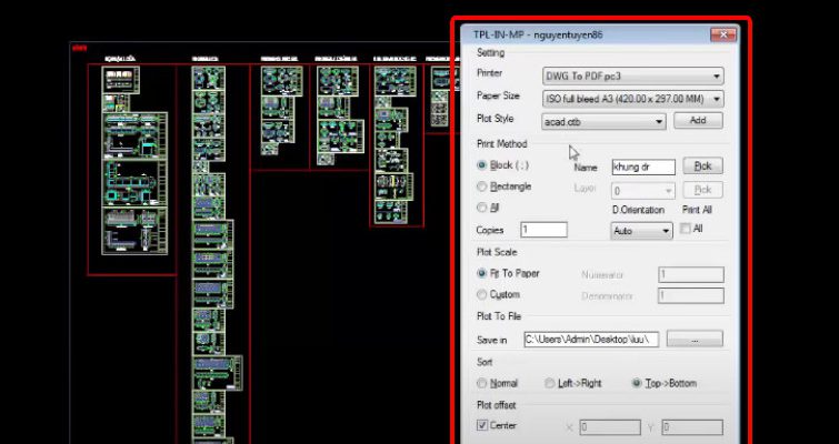Ví dụ in tự động hàng loạt bản vẽ dưới đây.