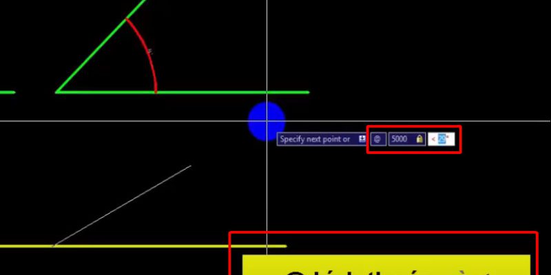Bước 4 : lúc này đoạn thẳng mới đã có góc là 30 độ so với phương ngang, việc tiếp theo là chỉ cần xác nhận điểm cuối của đoạn thẳng mà thôi. Như ví dụ của chúng ta là đoạn thẳng dài 5000 thì là nhập số 5000 vào.