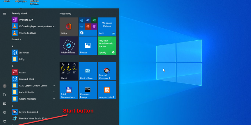 Bước 1: click nút Start