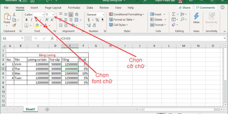 Cài đặt font chữ trong Excel