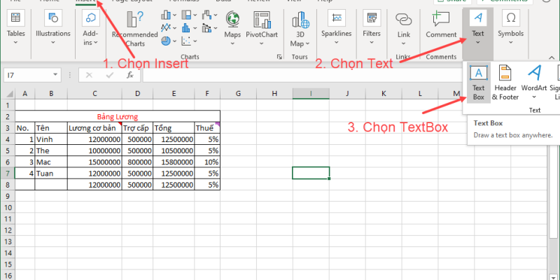 Để thêm một hộp văn bản, thực hiện các hành động dưới đây.