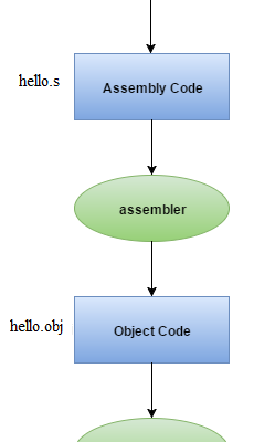 3. Mã assembly được gửi đến Assembler để lắp ráp mã và chuyển đổi nó thành mã đối tượng. Bây giờ tệp hello.obj được tạo ra.