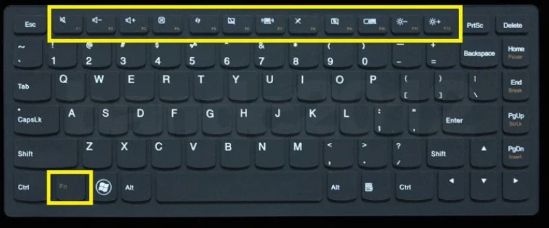 Lưu ý: với các laptop có màu của chữ Fn trùng với màu của các nút F1, F2,…,F12 (màu trắng, nâu, xanh.. tùy máy, như hình dưới là màu nâu) thì khi các bạn ấn một trong các nút F1,F2,..,F12 thì các bạn phải đồng thời ấn thêm phím Fn mới có thể vào Boot Option hoặc BIOS được.