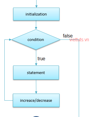 - Tiếp theo, check_dieu_kien được đánh giá. Nếu nó là true, phần thân của vòng lặp được thực thi. Nếu nó là false, phần thân của vòng lặp không thực thi và luồng điều khiển nhảy đến câu lệnh kế tiếp ngay sau vòng lặp for.