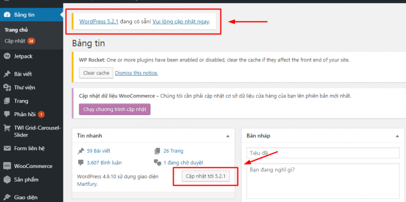 Bước 1: Cập nhật WordPress lên phiên bản mới nhất
